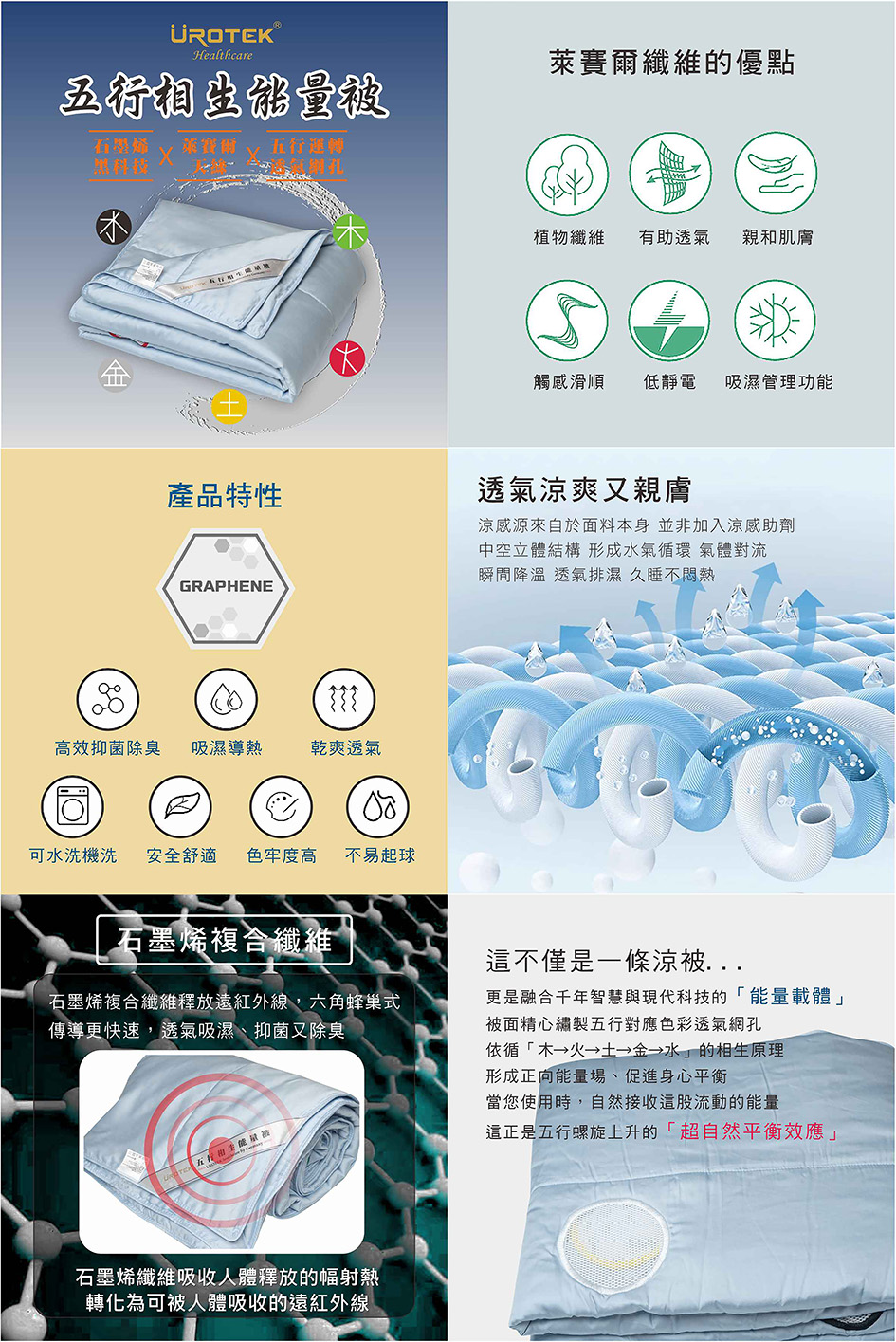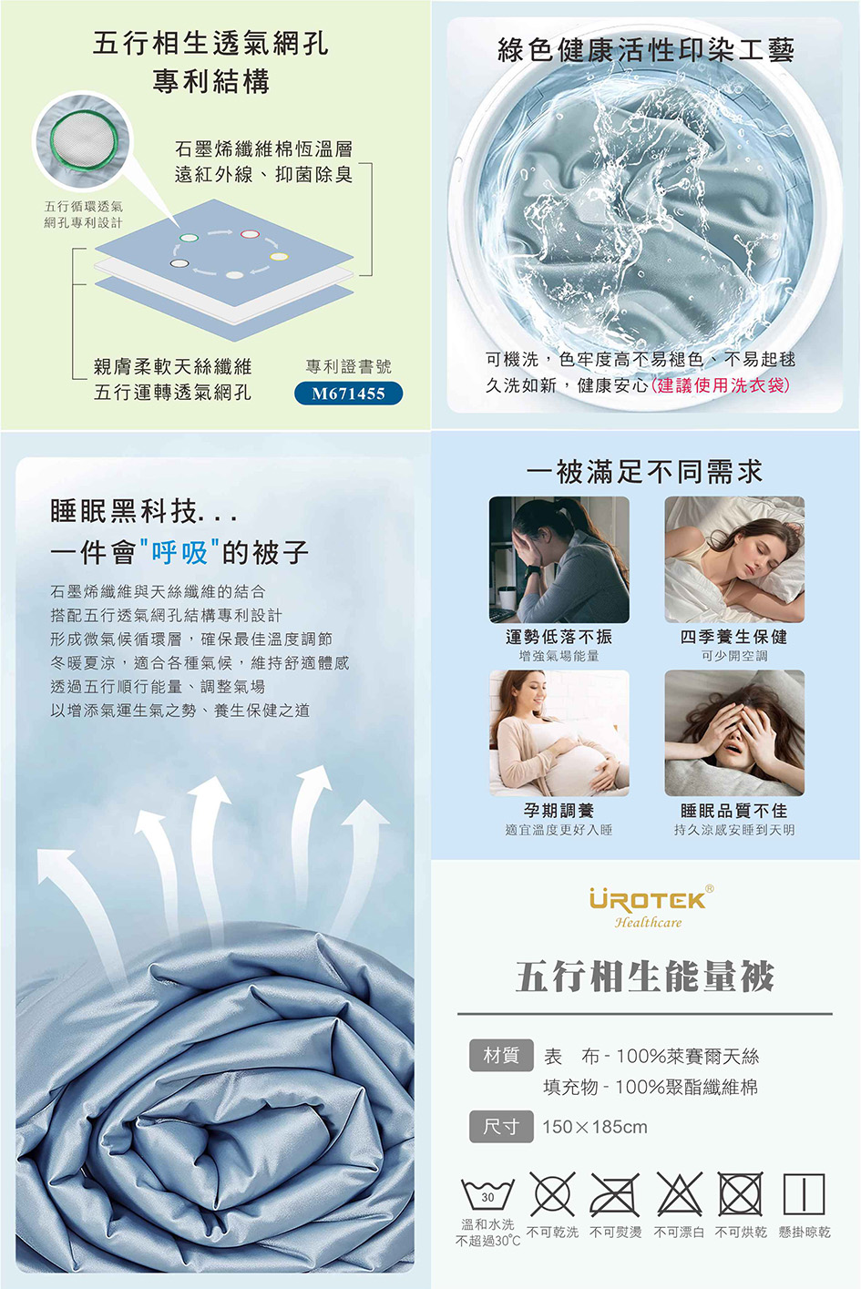1. 五行能量佈局:被面依循「木→火→土→金→水」相生順序,精心繡製對應色彩、位置,形成正向能量場2. 天然頂級材質:天絲柔滑透氣,親膚無負擔3. 色彩相生順序,促進身心平衡4. 科學透氣設計:五網孔透氣結構,調節最佳睡眠微氣候5. 睡眠、運勢、情緒、養生,全方位照顧6. 牛津布收納袋,耐磨、耐刮. 便攜實用